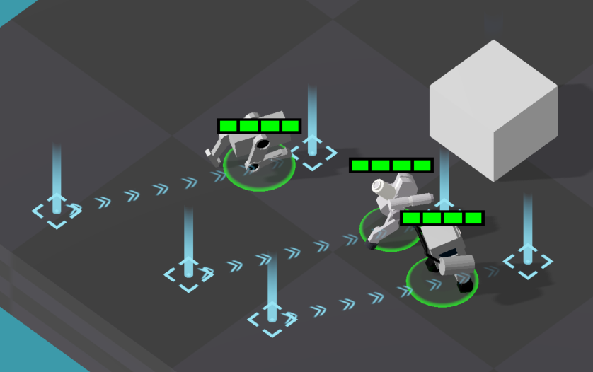 The project contains 3 unique, hand crafted units which are fully animated. The units showcase how to set up animations and state machines, how to add and modify new unique abilities (Guardian Shield, Self Destructing Explosion, Shooting Missiles) and how to generally build on the open source addon.
